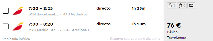 Em seguida, tudo que você tem que fazer é selecionar o seu voo para Espanha e fazer a sua reserva!